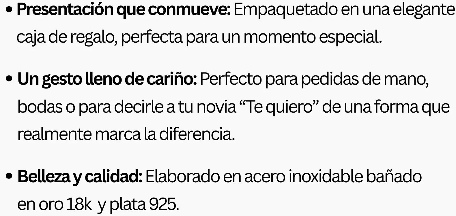 - Acero inoxidable 316L certificado: Oro (chapado en 18k) o Plata (chapado en rodio)