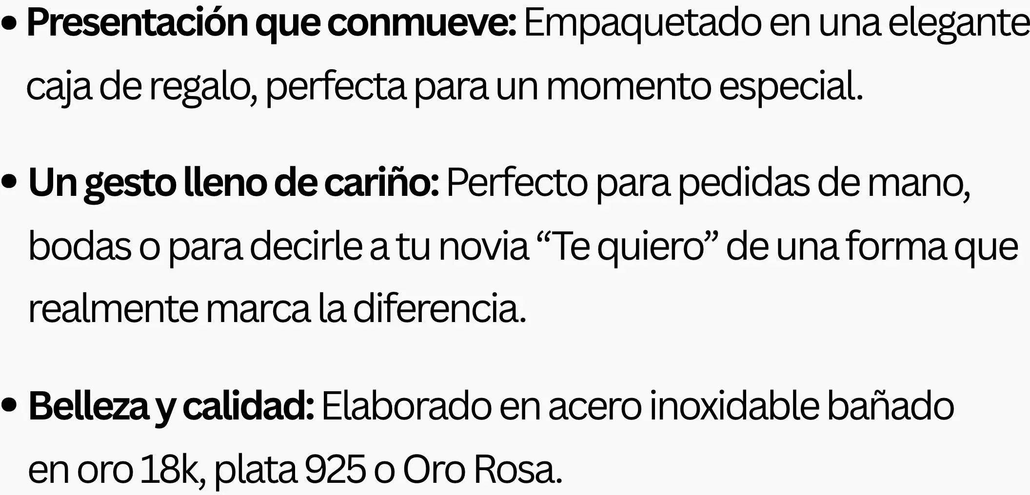 ⚠️ Opta por un mensaje breve e impactante: Un grabado demasiado largo puede ser menos legible. Al elegir un texto conciso, cada detalle se verá nítido y elegante en tu joya.