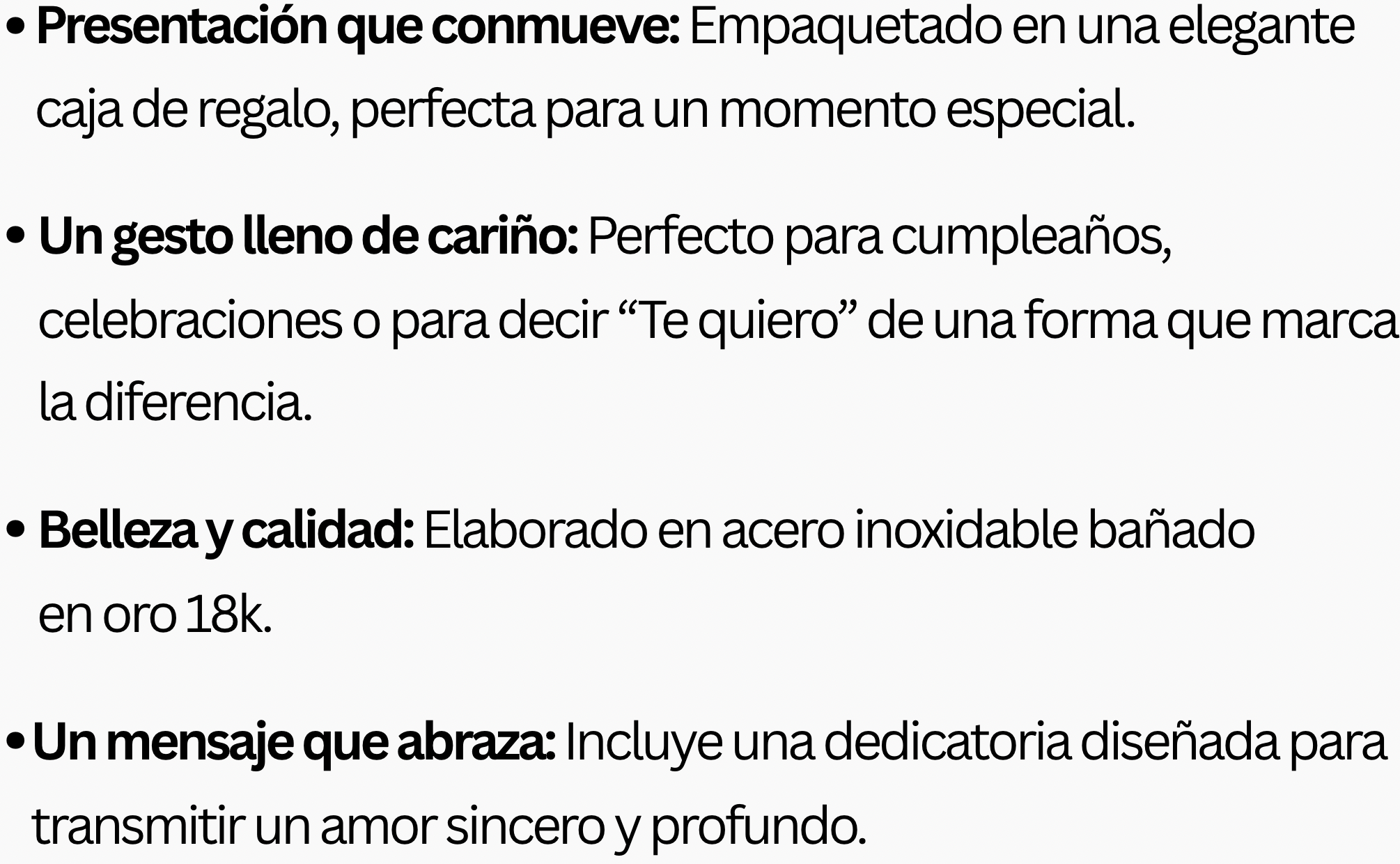Permite que tu hija lleve consigo un pedacito de tu corazón allá donde vaya. Este set de regalo, que incluye un collar con charm de trébol de 4 hojas, una Rosa Eterna y una tarjeta con un mensaje significativo, es un recordatorio atemporal de tu amor, tu apoyo y tus bendiciones.