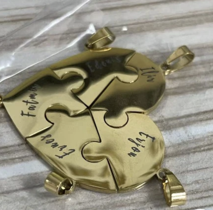 Nuestros artesanos se aseguran de que cada grabado y cada pieza del puzle encajen a la perfección, para crear una joya única que refleje el amor y el vínculo que une a su familia.